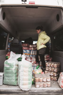 Mit Kleinbussen werden Hilfsgüter verteilt und Schutzbedürftige evakuiert.