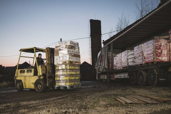 Die Hilfstransporte aus Rumänien und der Schweiz sind eingetroffen (Chust, März) und werden anschliessend verteilt.
